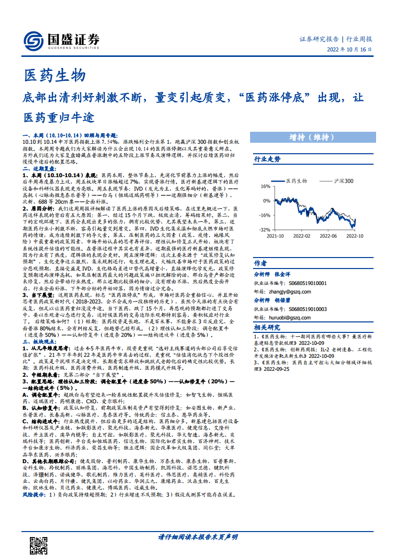 本报告核心观点指出,在经历了长达15个月的深度调整后,医药生物板块于2022年10月14日迎来“涨停底”,标志着市场情绪的极致出清和对政策悲观预期的理性修复。此次普涨行情不仅是超跌反弹,更是行业底部确立的重要信号,预示着医药板块有望重回漫漫牛途。市场对医药政策的认知正从过度悲观转向正常化,为板块系统性估值提升提供了可能性。