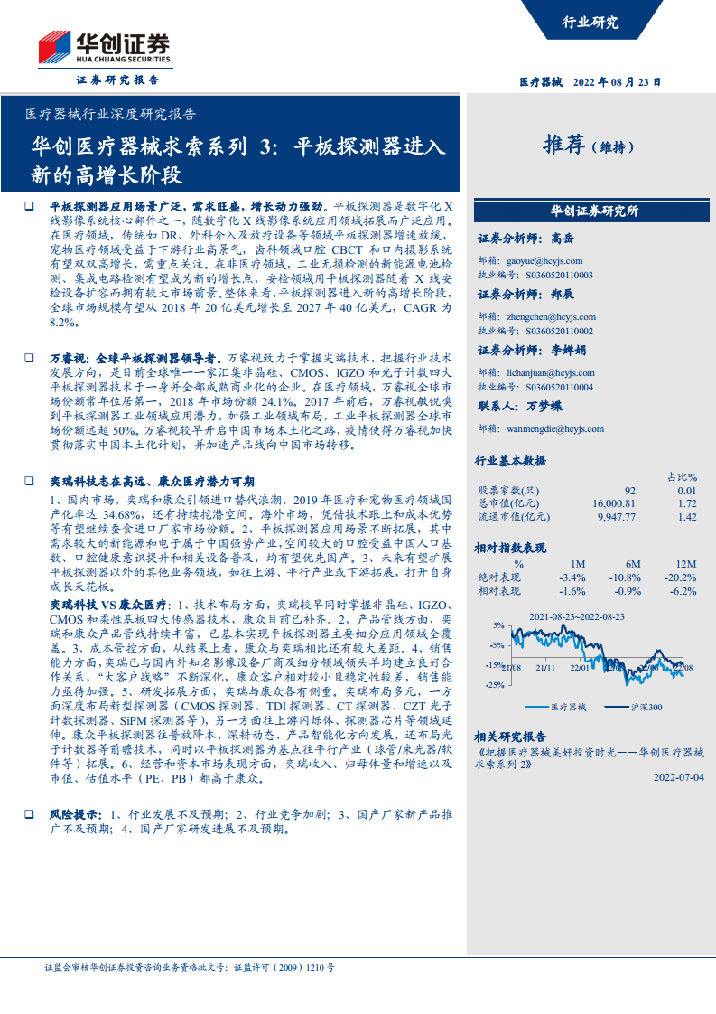 华创医疗器械求索系列3:平板探测器进入新的高增长阶段