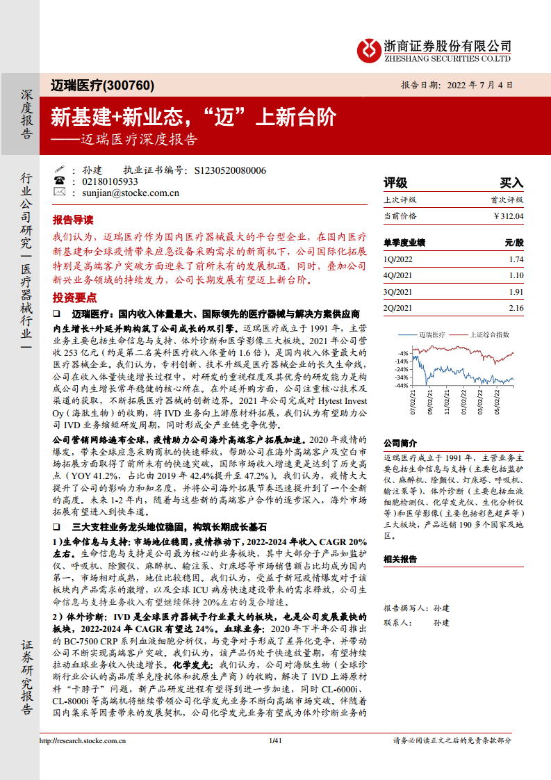 - 2.1. 生命信息与支持:疫情推动下,有望保持持续高增长