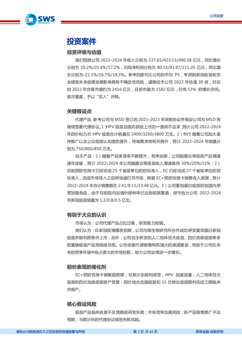 公司将研发技术与高效市场推广有机结合,形成了相互促进的良性循环机制,加速了产品从研发到市场价值的转化。在市场层面,HPV疫苗和五价轮状病毒疫苗在国内仍处于供不应求和渗透率较低的阶段,未来五年存量市场空间巨大,新增市场需求稳定。在研发层面,独家产品EC+预防性微卡已获批上市并开始放量,人二倍体狂苗、15价肺炎结合疫苗等多个重磅品种处于临床后期,预计未来3-5年内将逐步上市,合计市场规模超百亿元,为公司注入新的增长动力。尽管面临新冠疫苗业绩不确定性及市场竞争加剧等风险,但公司凭借其核心竞争力,预计未来仍有显著的增长空间。