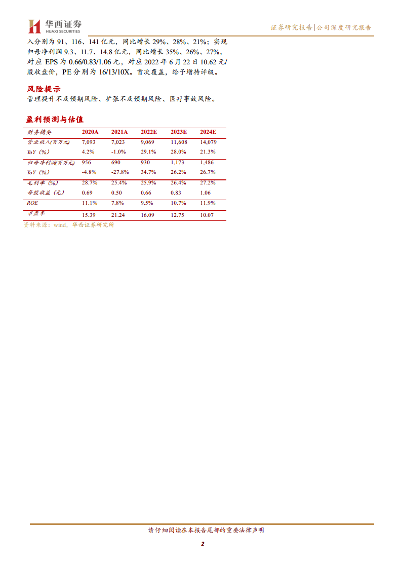 基于对医疗服务和智能配用电业务的分析,预计公司2022-2024年整体实现收入分别为91、116、141亿元,同比增长29%、28%、21%;实现归母净利润9.3、11.7、14.8亿元,同比增长35%、26%、27%。对应2022年6月22日10.62元/股收盘价,PE分别为16/13/10X。