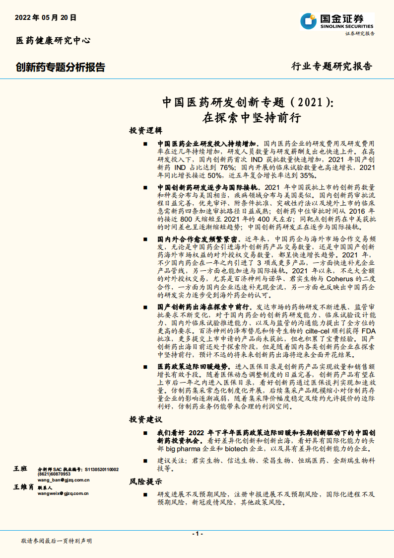 中国医药研发创新专题(2021):在探索中坚持前行