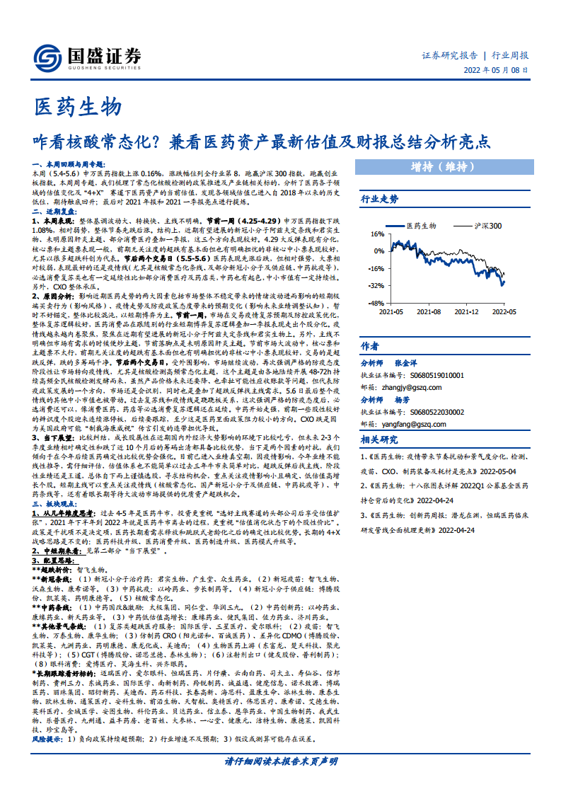 医药生物行业周报:咋看核酸常态化?兼看医药资产最新估值及财报总结分析亮点