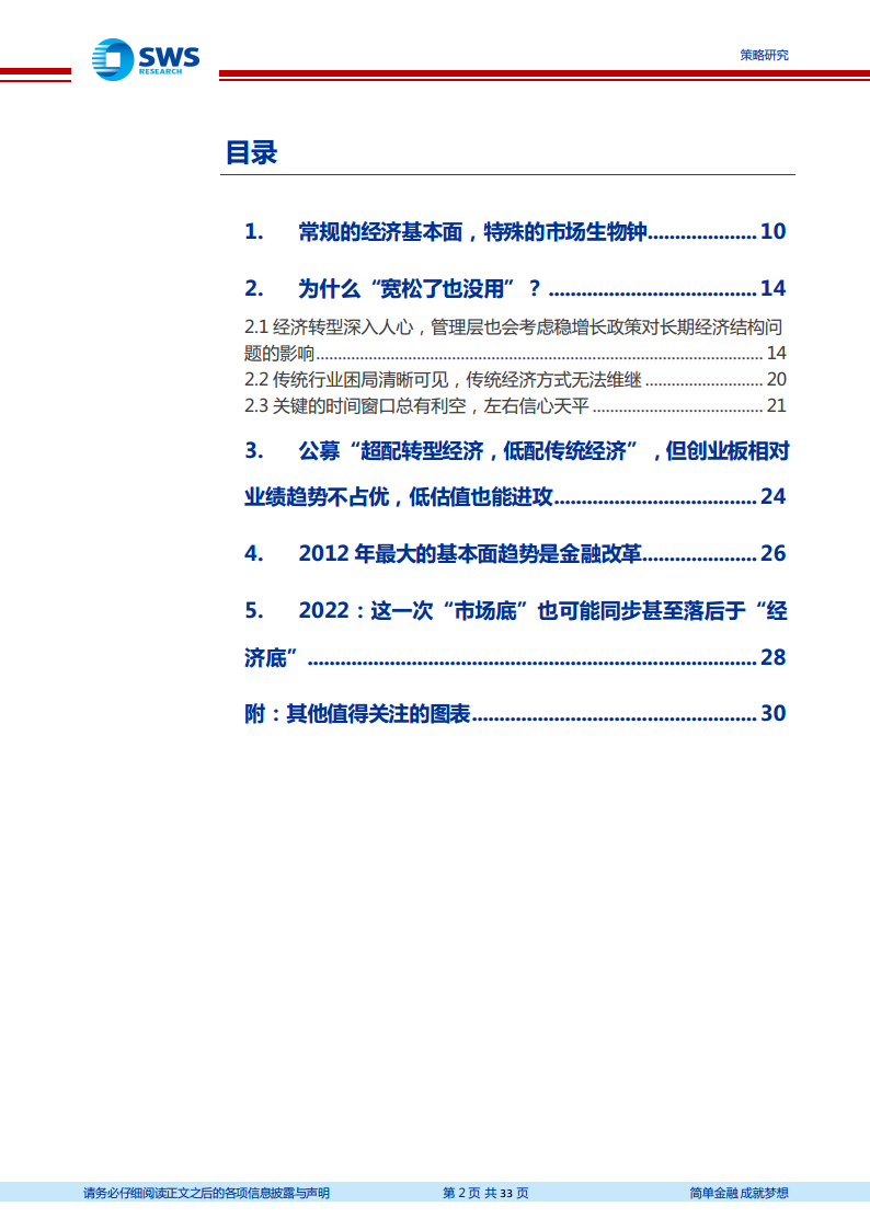 展望2022年,市场将面临与2012年相似的挑战,包括稳增长政策弹性下降、盈利能力承压、长期问题悬而未决以及海外约束增加。市场对政策效果的苛刻要求和对基本面改善的“无可辩驳”验证需求,将使得市场在短期内继续承压,尤其是在第二季度。然而,报告也指出了结构性机会,建议关注消费和稳定(电力)等相对业绩趋势占优的方向,并强调顺周期低估值板块(如房地产和煤炭)在经济底确认后可能带来显著的投资回报。对于公募基金而言,在2022年坚守低估值顺周期策略,可能成为实现净值排名的有效途径。