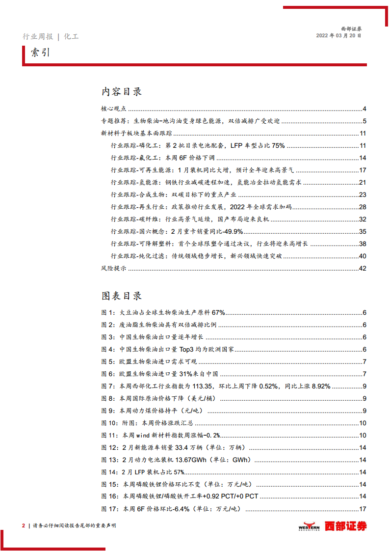 本报告全面分析了2022年3月20日化工行业的市场动态与发展趋势,核心观点聚焦于新能源与绿色化工的双轮驱动,以及政策引导与技术创新对多领域市场潜力的释放。在新能源领域,磷酸铁锂电池的强劲需求持续推动磷化工企业向产业链下游延伸,而氟化工中的PVDF和6F市场则在供需博弈和扩产潮中呈现复杂态势。可再生能源和氢能源作为绿色转型的重要方向,在政策支持下展现出高景气度,特别是氢能冶金在钢铁行业减碳进程中将发挥关键作用。