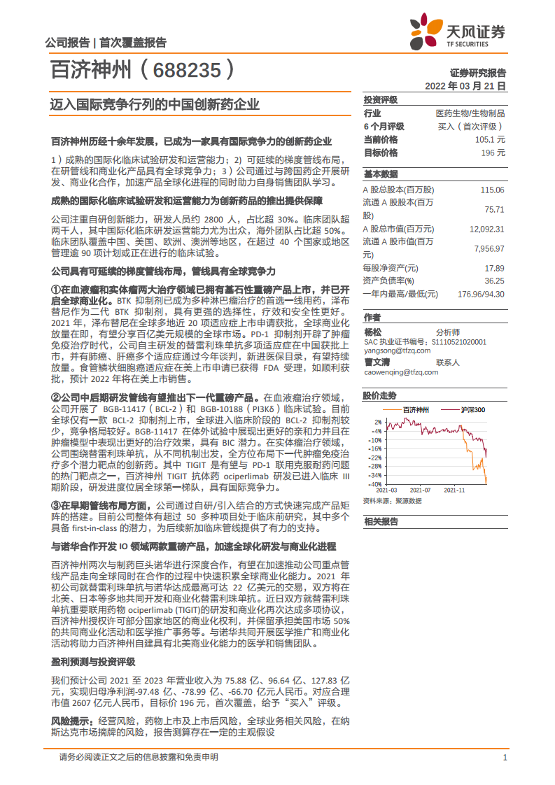 1. 百济神州:持续开拓创新的全球化、商业化阶段的创新药公司