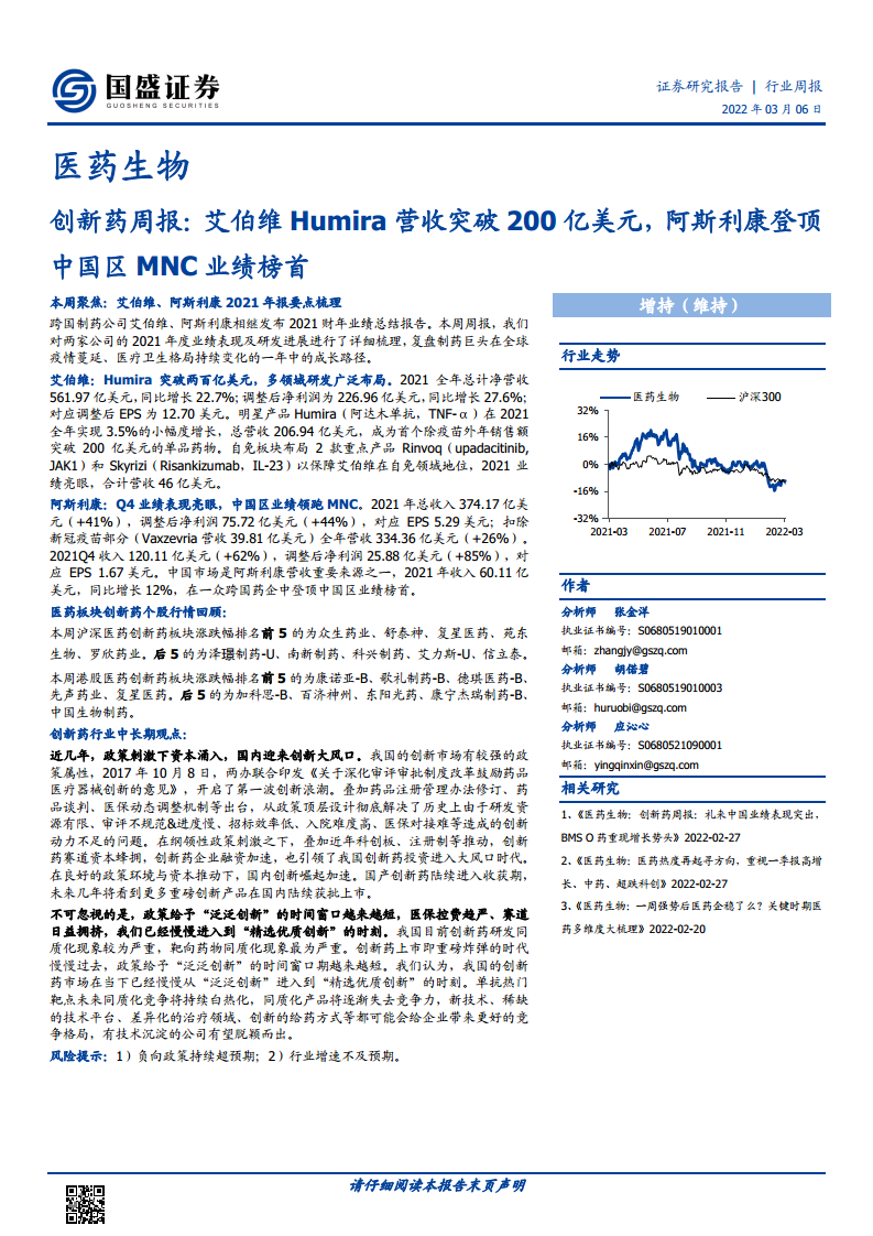 创新药周报:艾伯维Humira营收突破200亿美元,阿斯利康登顶中国区MNC业绩榜首