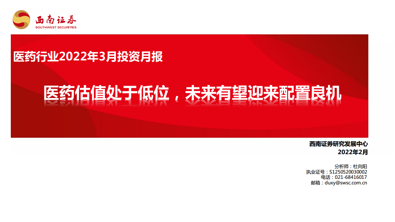 医药行业2022年3月投资月报:医药估值处于低位,未来有望迎来配置良机