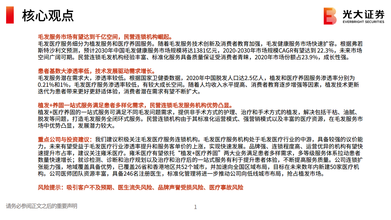 毛发医疗服务行业纵览:青丝守护者,千亿大市场
