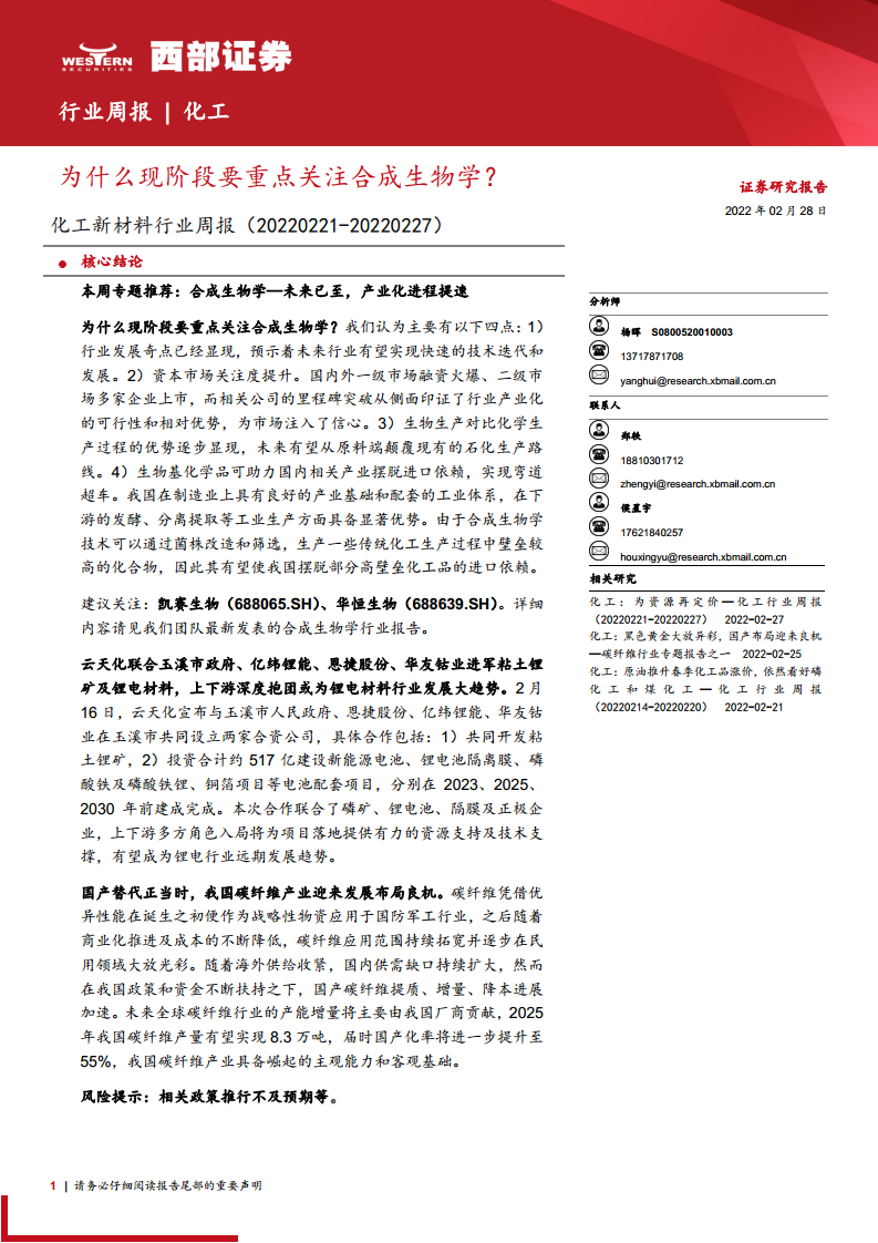 化工新材料行业周报:为什么现阶段要重点关注合成生物学?