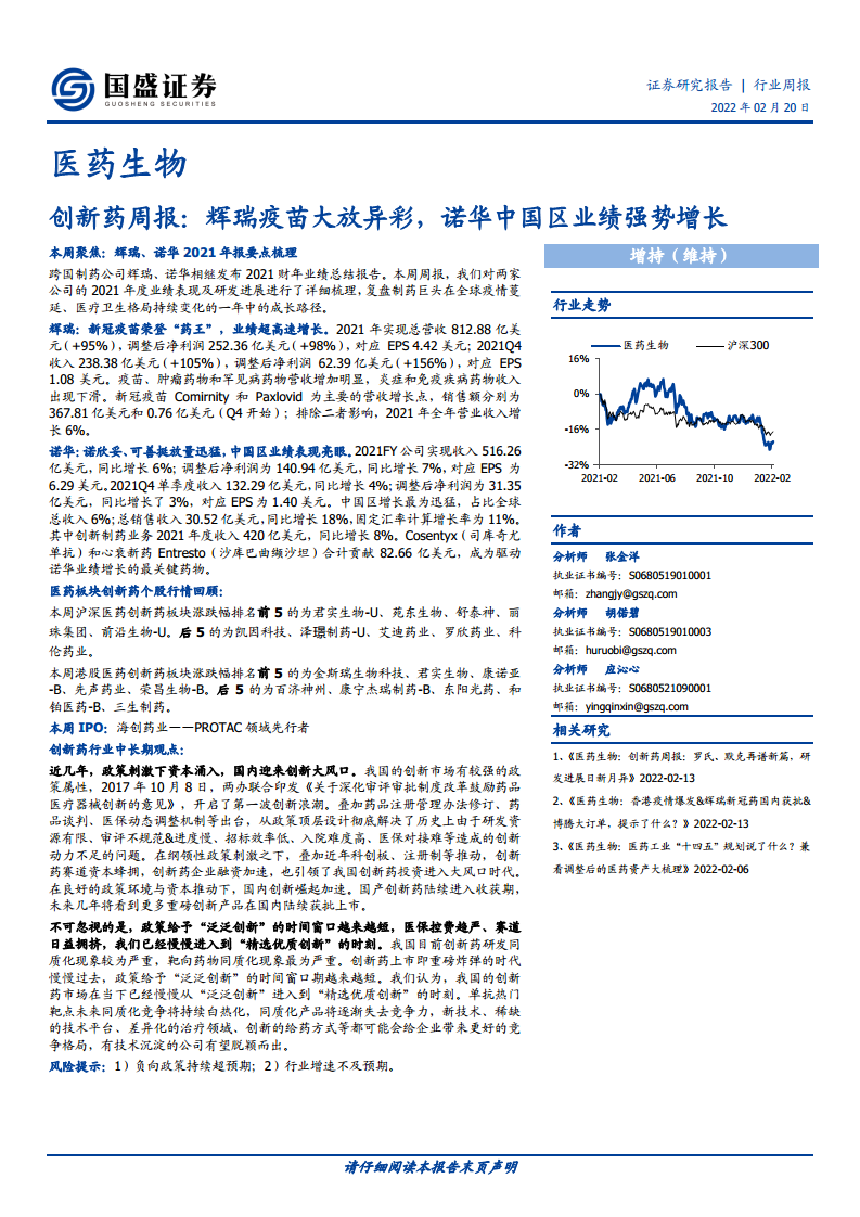 医药生物创新药周报:辉瑞疫苗大放异彩,诺华中国区业绩强势增长