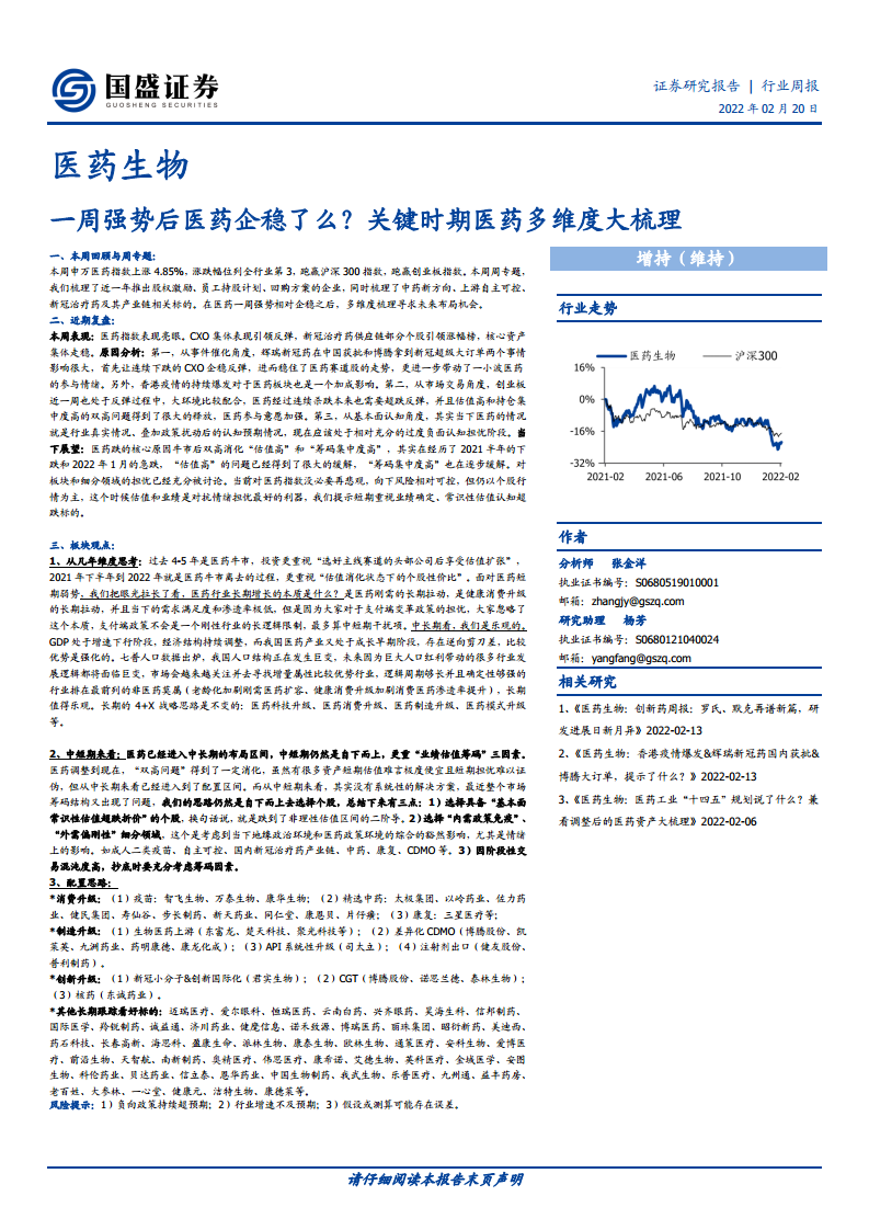 医药生物行业周报:一周强势后医药企稳了么?关键时期医药多维度大梳理