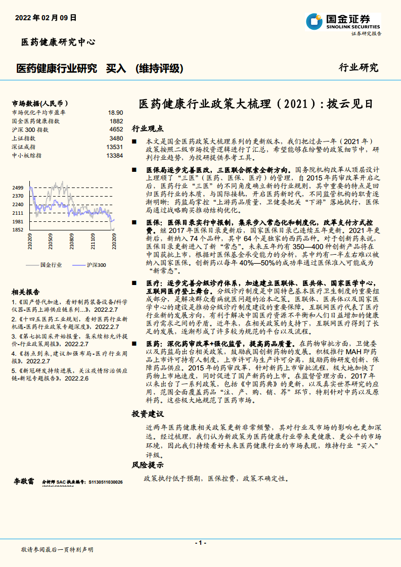 2021年,中国医药健康行业在“三医”(医药、医保、医疗)联动改革的顶层设计下,持续深化改革,政策导向明确,旨在回归医药行业本质,与国际接轨,开启新时代。医保局通过战略购买推动结构优化,药监局掌控上游药品质量,卫健委把关下游落地执行,共同构建了更健康、更公平的市场环境。