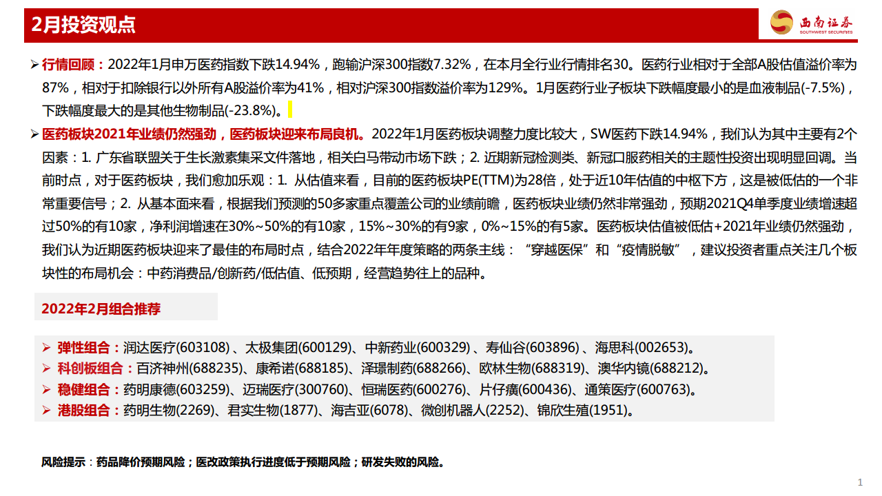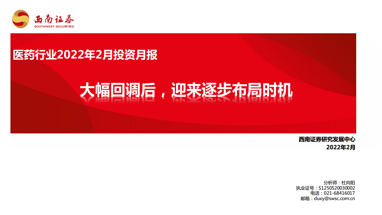 医药行业2022年2月投资月报:大幅回调后,迎来逐步布局时机