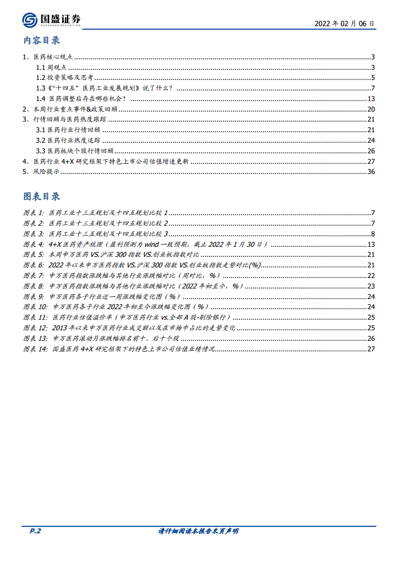 面对短期弱势,报告强调2022年医药投资应更重视“前小后大”的结构性节奏,即在市场情绪冰点、低持仓状态下,医药板块具备反弹诉求,且许多优质资产已跌出价值。投资策略应规避政策扰动,聚焦政策鼓励或免疫的细分领域,并遵循“4+X”长期战略思路,即医药科技升级、医药消费升级、医药制造升级、医药模式升级以及其他特色细分龙头,通过自下而上精选个股,寻找具备“基本面理性估值下的估值折价”的标的。