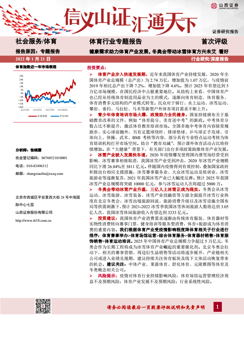 体育行业专题报告:健康需求助力体育产业发展,冬奥会带动冰雪体育方兴未艾
