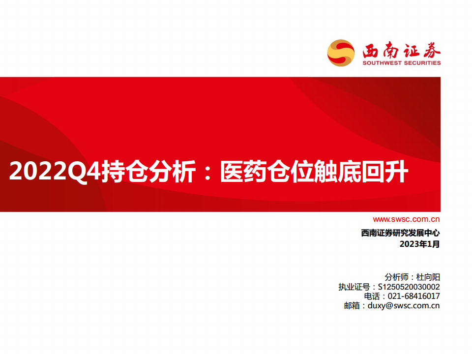 2022Q4持仓分析:医药仓位触底回升