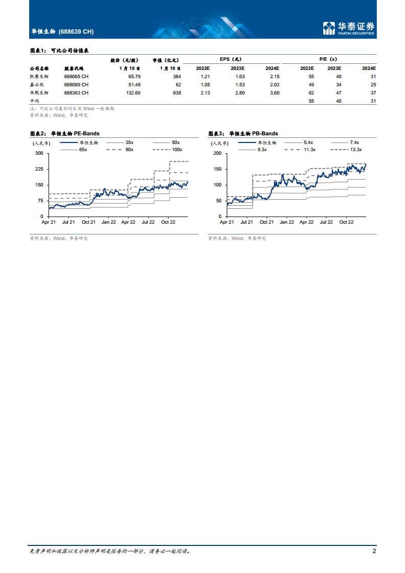 从盈利能力来看,华泰研究预测公司毛利率在2022年将回升至39.09%(2021年为32.33%),净利率预计达到21.62%(2021年为17.63%)。资产回报率方面,预计2022年ROE将达到21.91%,并在2023年进一步提升至24.12%,显示出公司资本利用效率的持续优化。估值方面,参考可比公司2023年Wind一致预期平均40倍PE,并充分考虑公司新项目成长性及合成生物应用潜力,华泰研究给予公司2023年49倍PE,目标价上调至203.84元(前值为151.28元),投资评级由“持有”上调至“买入”。