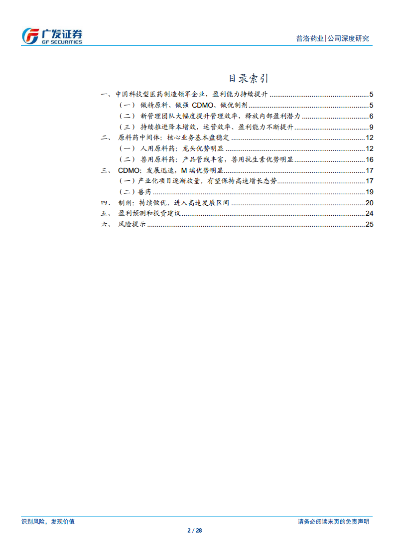 - “做精原料、做强CDMO、做优制剂”战略: 2012年公司通过重大资产重组实现医药资产整体上市,并于2013年更名为普洛药业股份有限公司。2007年,公司组织管理结构和发展战略进行重大调整,确立了“事业部+职能”的统一组织架构,并明确了“做精原料、做强CDMO、做优制剂”的发展战略。这一战略使得各部门职能清晰,三大业务板块形成强大的协同效应,共同推进智能制造改革,实现降本增效,推动公司进入高速发展期。