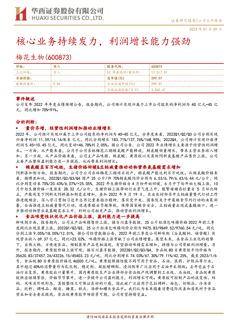 华西证券维持对梅花生物的“买入”评级。