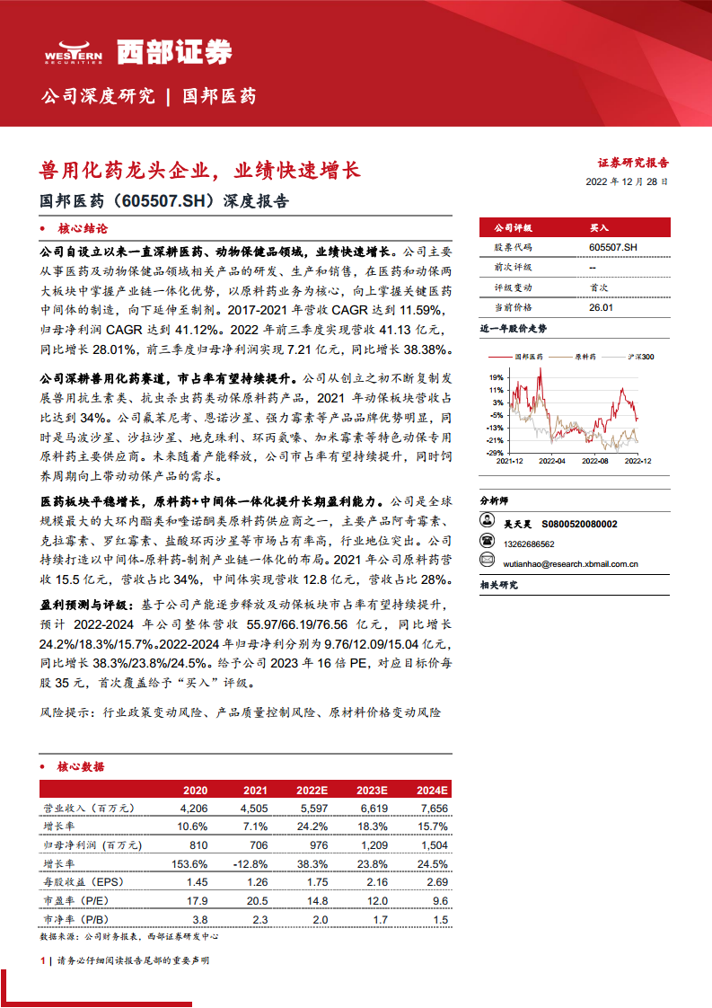 国邦医药(605507):兽用化药龙头企业,业绩快速增长