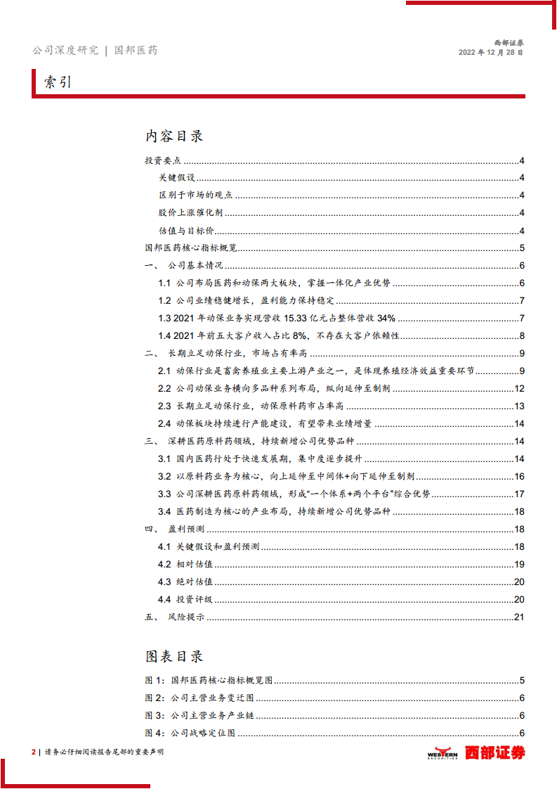 选取普洛药业、美诺华、中牧股份作为可比公司,其2023年平均PE为17倍。考虑到国邦医药在医药和动保两大板块的产业链一体化优势,给予公司2023年16倍PE,对应市值193.4亿元,目标价每股35元。