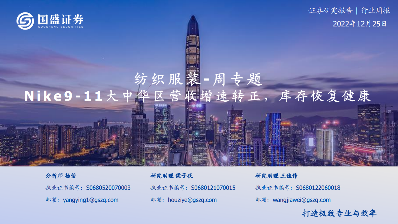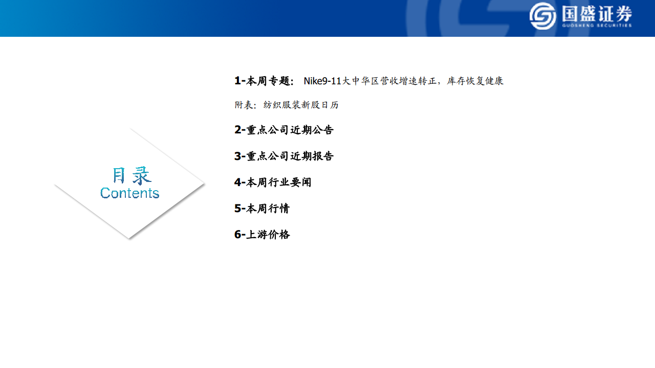周专题:Nike9-11大中华区营收增速转正,库存恢复健康