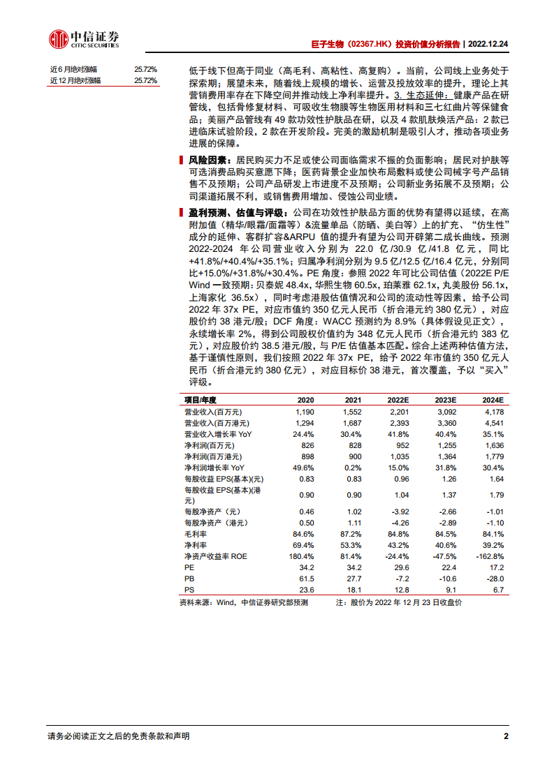 公司致力于从技术高度和技术宽度两个维度发展,通过合成生物平台横向拓展生物活性物(如稀有人参皂苷),纵向深化技术在严肃医疗和消费品领域的应用,从而成长为一家兼具“美丽+健康”属性的生态型公司。尽管当前线上业务处于关键探索期,但其盈利能力仍有进一步提升空间。中信证券首次覆盖给予“买入”评级,目标价38港元。