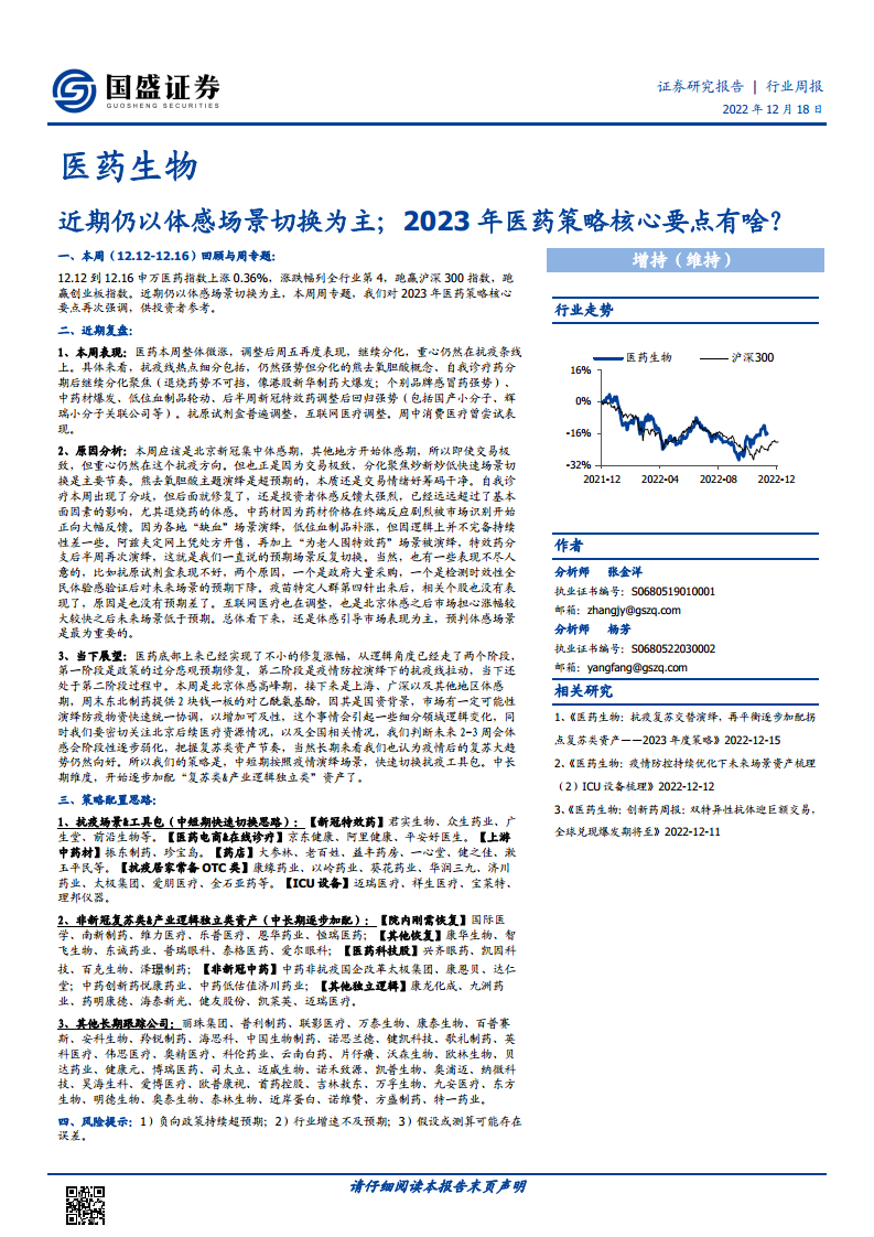 近期仍以体感场景切换为主,2023年医药策略核心要点有啥?