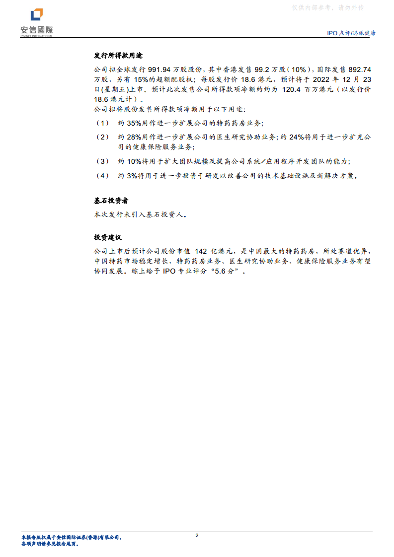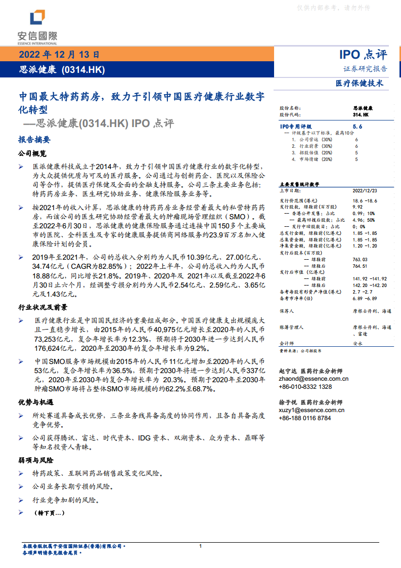 思派健康(0314.HK)IPO点评:中国最大特药药房,致力于引领中国医疗健康行业数字化转型