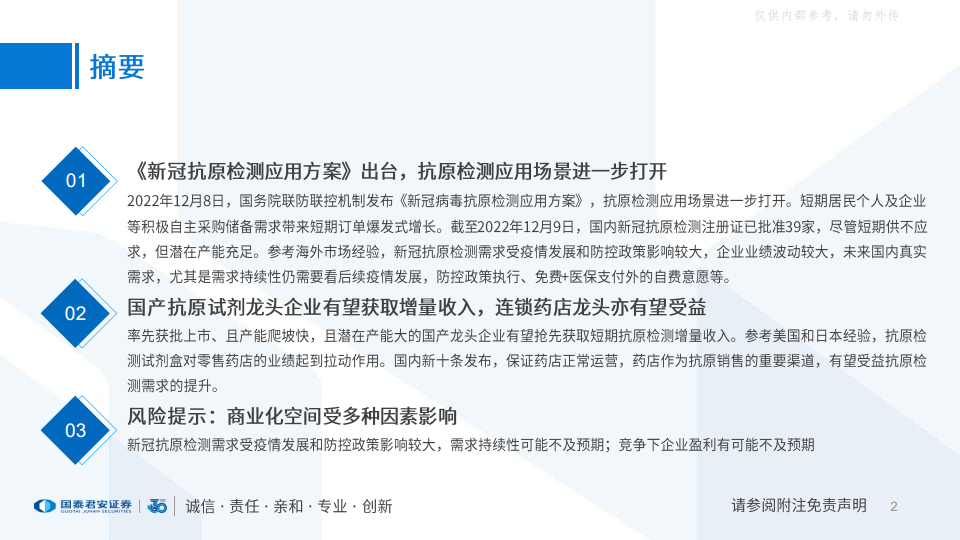 - 持续需求潜力:根据《新冠病毒抗原检测应用方案》,老年人、大型企业、工地、学校等人员密集场所的检测需求有望持续。