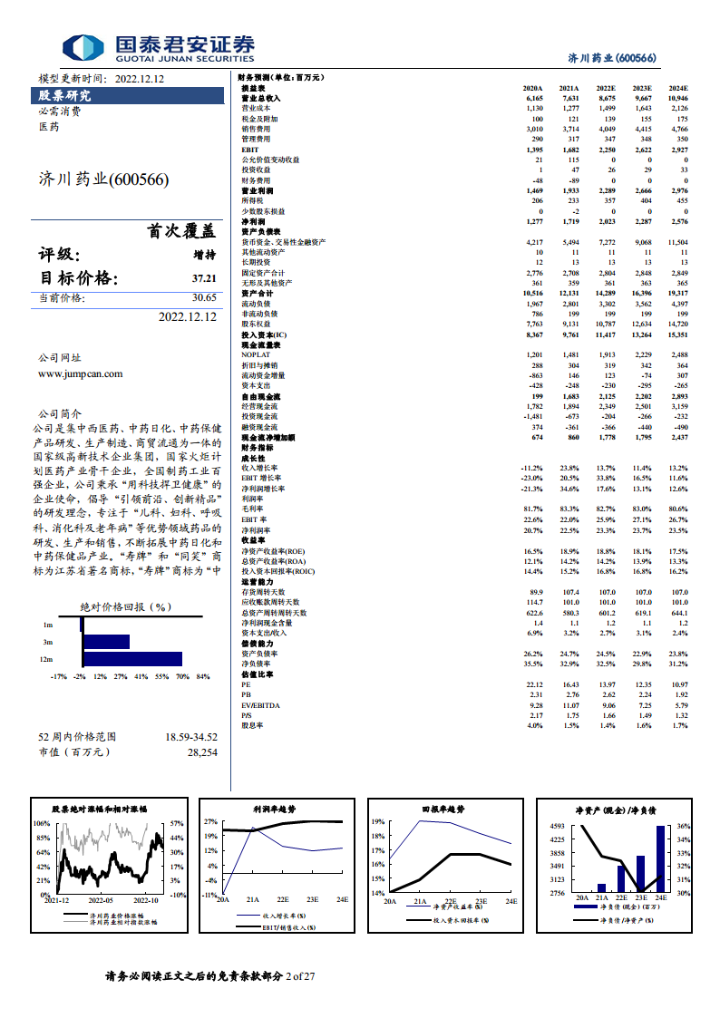 国泰君安-济川药业-600566-首次覆盖报告:产品与渠道持续优化,BD赋能第二增长曲线