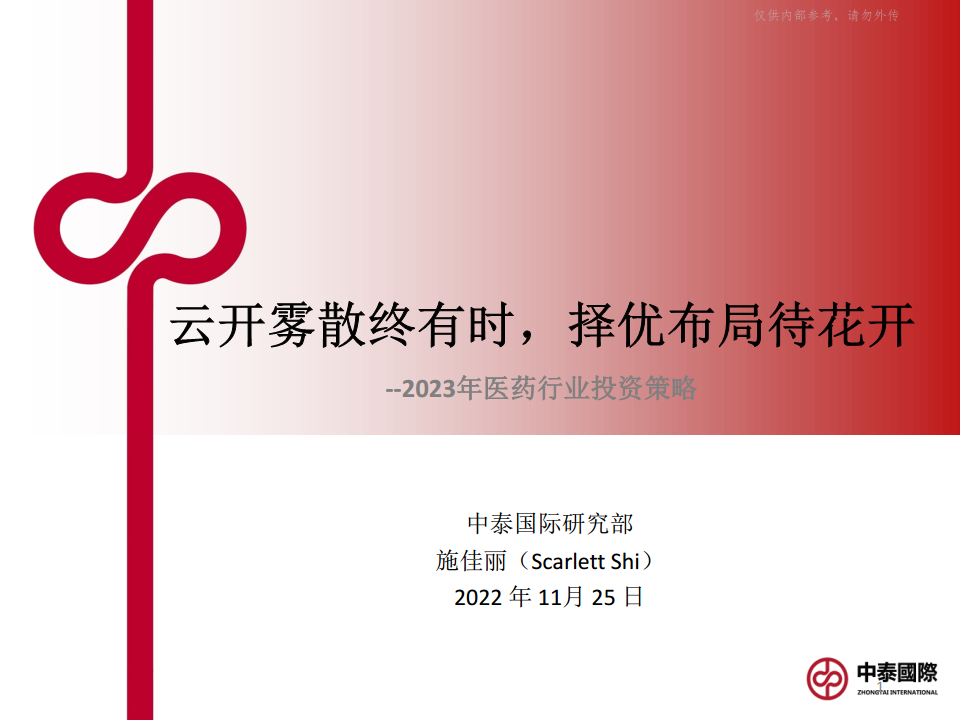 2023年医药行业投资策略:云开雾散终有时,择优布局待花开