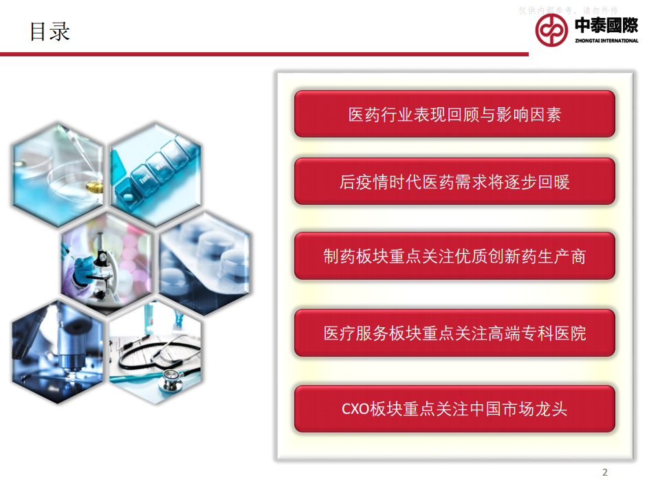 本报告对2023年医药行业持乐观态度,预计随着后疫情时代的到来,医药需求将逐步回暖,同时药品定价政策将趋于合理化。报告强调,在当前市场环境下,投资者应关注行业内的优质企业,以把握修复性行情和结构性增长机会。