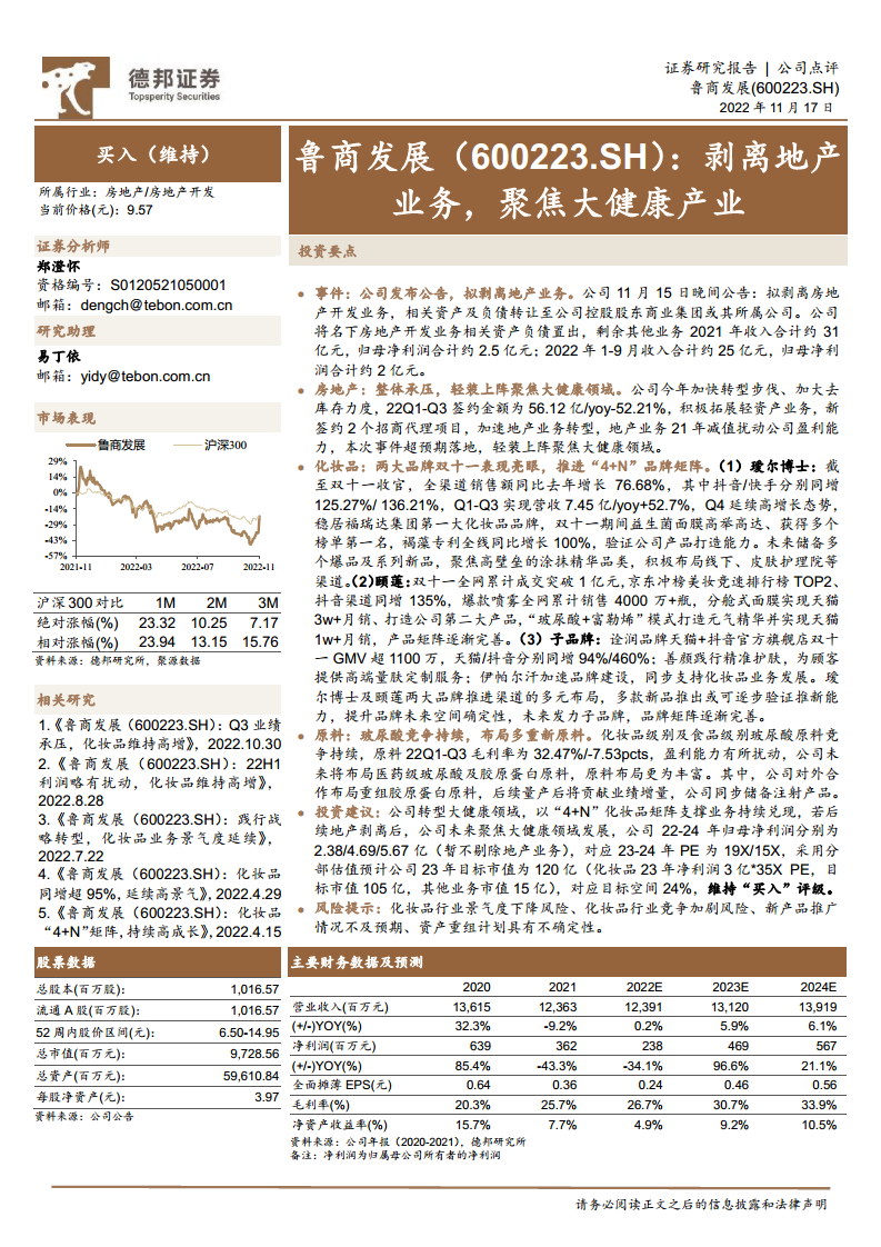 鲁商发展正积极推进其核心战略转型,通过拟剥离盈利承压的房地产开发业务,将公司资源和发展重心全面聚焦于高增长潜力的大健康产业。此举旨在显著优化公司的资产负债结构,有效降低传统地产业务带来的经营风险和市场波动影响,从而提升整体盈利能力和市场估值水平,实现可持续发展。