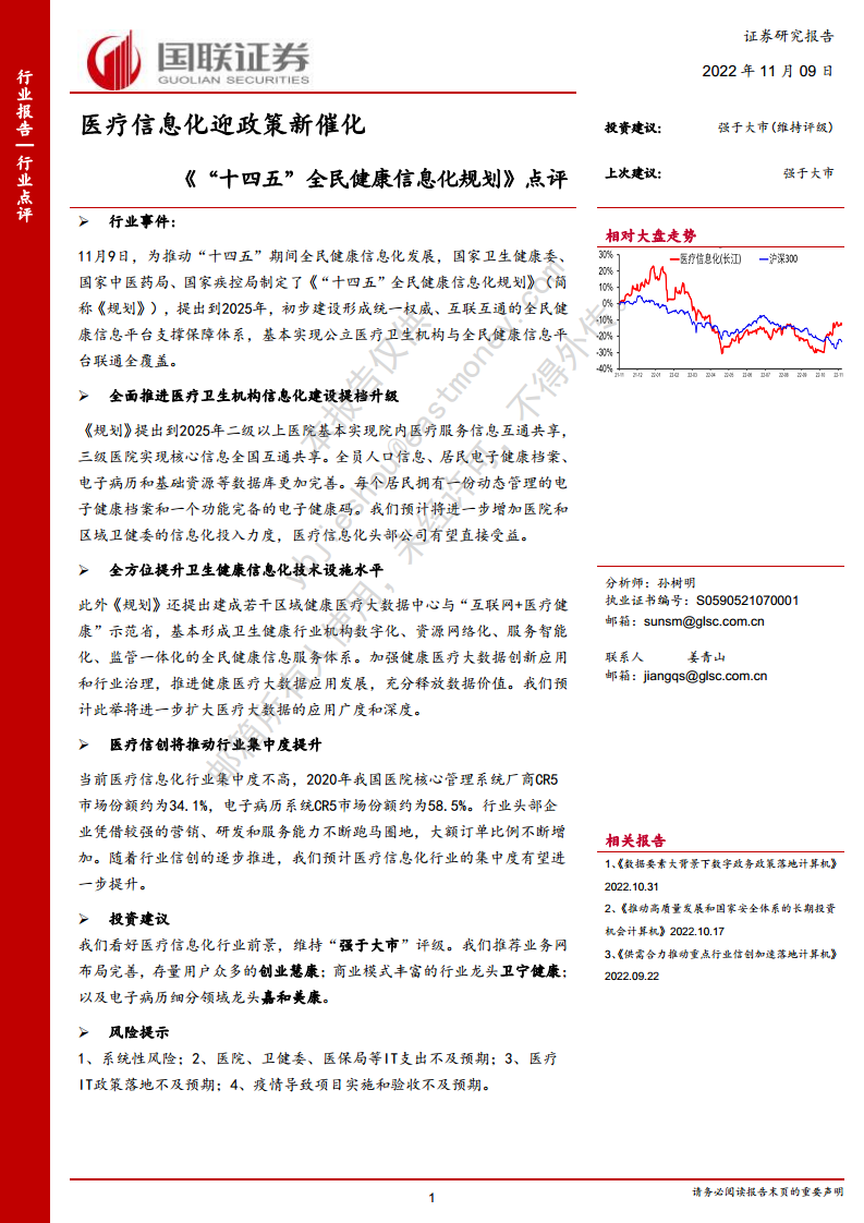 本报告核心观点指出,《“十四五”全民健康信息化规划》的发布,为医疗信息化行业带来了新的政策催化剂,预示着行业将迎来全面的提档升级和投资增长。
