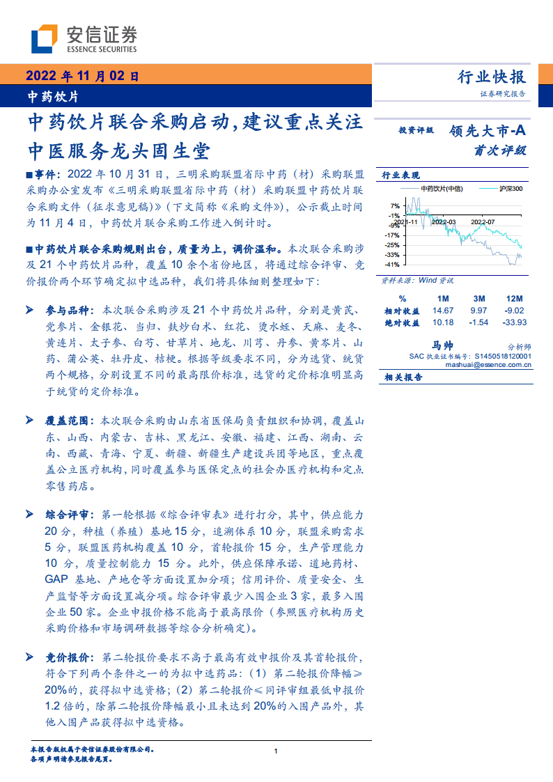本报告核心观点指出,三明采购联盟省际中药饮片联合采购文件的发布,标志着中药饮片行业进入以质量为核心、而非单纯追求低价的新阶段。此次联采涉及21个中药饮片品种,覆盖十余个省份,其评审机制显著侧重于供应能力、种植基地、追溯体系、质量控制等非价格因素,这些因素在综合评审中占据高达85%的权重,而价格权重仅为15%。这一导向预示着中选品种的最终降幅将相对温和,旨在引导产业实现“保质、提级、稳供”的目标,而非简单粗暴地压低价格。
