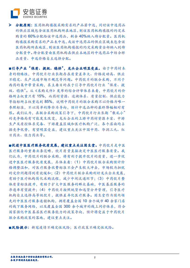 中药饮片联合采购政策的出台,预计将深刻改变当前行业“散乱小”的竞争格局。具备完善上游中药材资源、中游生产及质控体系、下游广泛覆盖区域和医疗机构的龙头企业将明显受益,从而推动行业集中度提升。同时,由于饮片质量的提升和采购流程的优化,此次联采也将有力促进中医医疗服务的优质发展,扩大中医服务的群众基础,并提升基层渗透率。报告特别强调,固生堂等领先的中医医疗服务连锁机构,将因其符合国家政策导向和自身服务网络优势而迎来发展机遇。