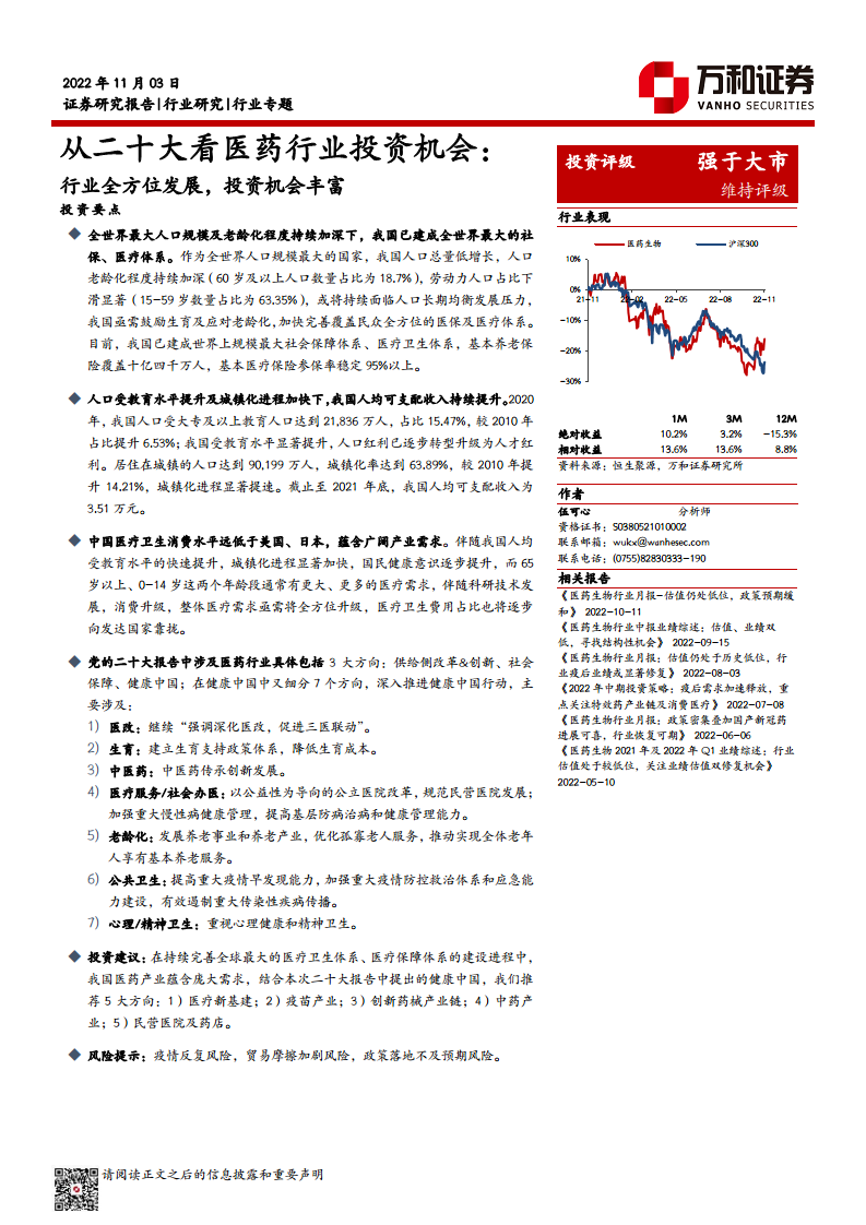 从二十大看医药行业投资机会:行业全方位发展,投资机会丰富
