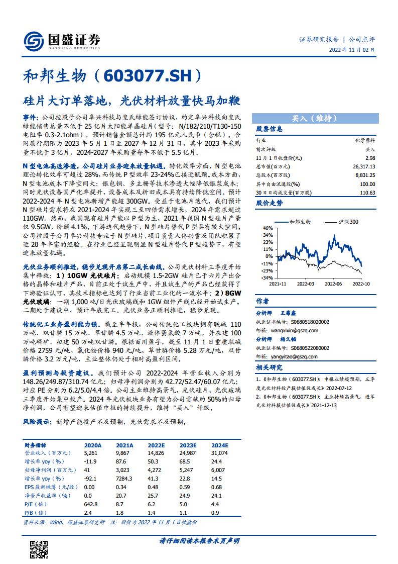 和邦生物(603077):硅片大订单落地,光伏材料放量快马加鞭