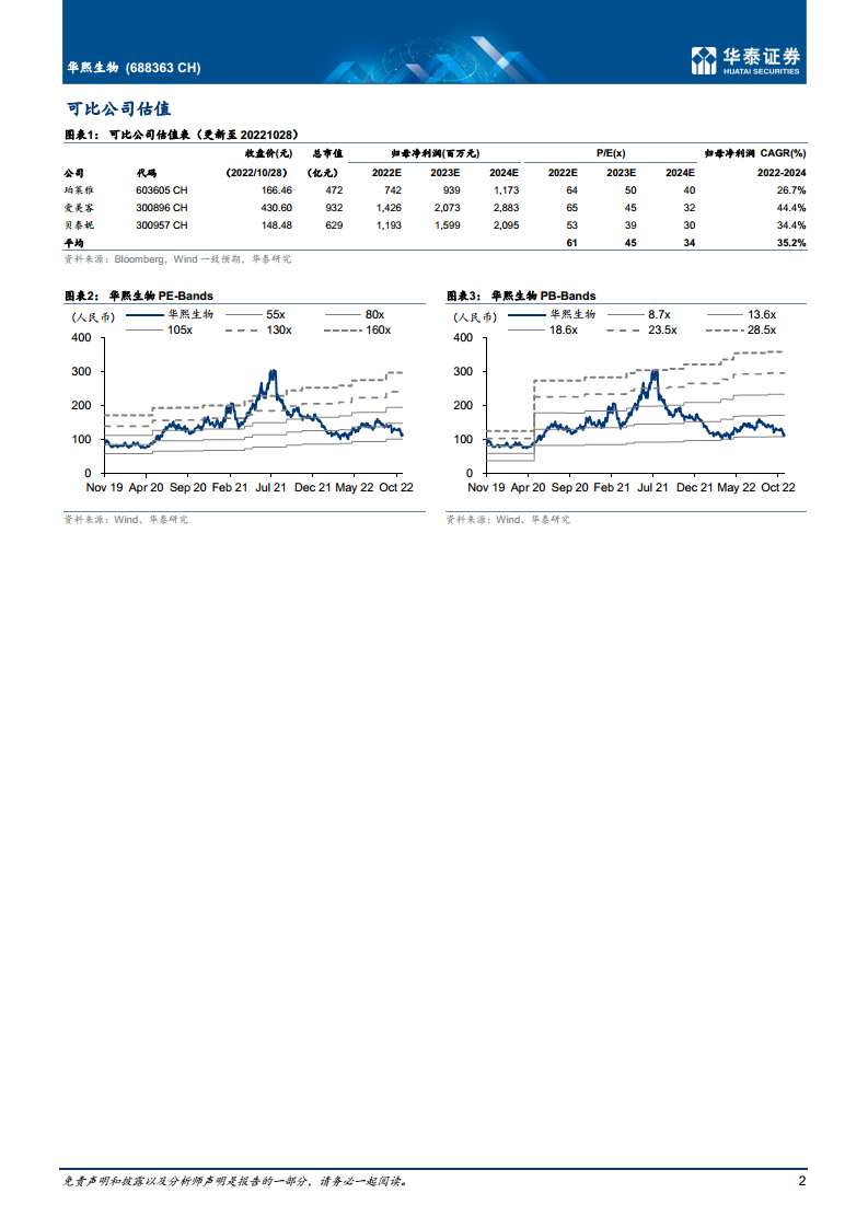 华熙生物2022年前三季度实现营收43.20亿元,同比增长43.43%;归母净利润6.77亿元,同比增长21.99%;扣非净利润6.01亿元,同比增长34.51%。其中,第三季度单季营收13.85亿元,同比增长28.76%;归母净利润2.04亿元,同比增长4.86%;扣非净利润1.88亿元,同比增长33.64%。归母净利润增速低于扣非净利润,主要由于3Q22政府补助同比减少5216万元(3Q22为1365万元,3Q21为6581万元)。华泰研究略微调整了公司2022-2024年归母净利润预测至10.12/13.30/17.02亿元,并基于2023年56倍PE(可比公司Wind一致预期45倍,公司作为HA龙头给予溢价)给予目标价154.80元。