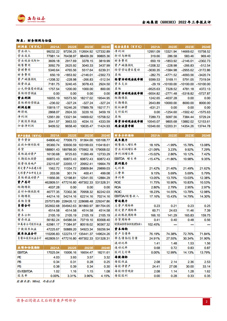 - 分析师对金地集团未来的盈利能力持乐观态度,预计2022-2024年公司归母净利润将分别达到96.58亿元、106.35亿元和114.25亿元,增速分别为2.65%、10.12%和7.42%,呈现稳步增长态势。