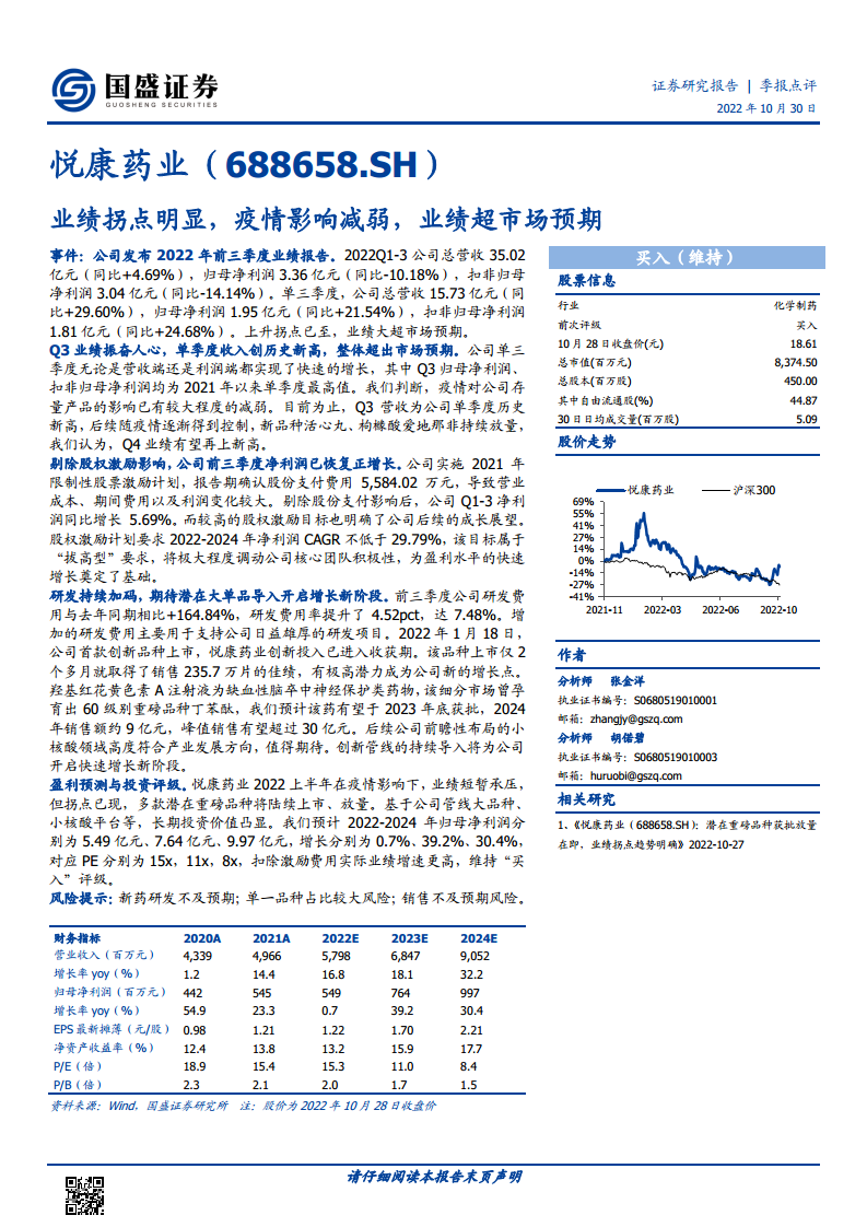 悦康药业(688658):业绩拐点明显,疫情影响减弱,业绩超市场预期