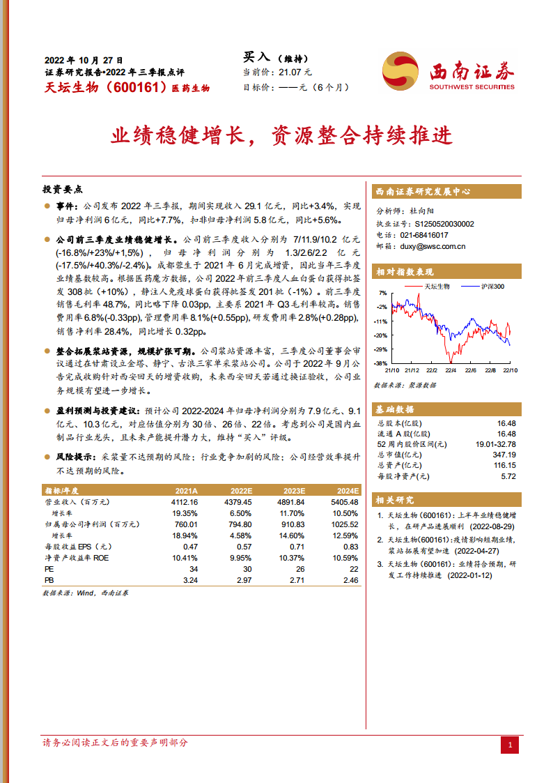 鉴于天坛生物作为国内血制品行业的龙头企业,且未来在产能提升方面具有巨大潜力,西南证券维持对其“买入”评级。这一评级反映了市场对公司长期发展前景的信心,尤其是在浆站资源拓展和业务整合带来的增长空间。