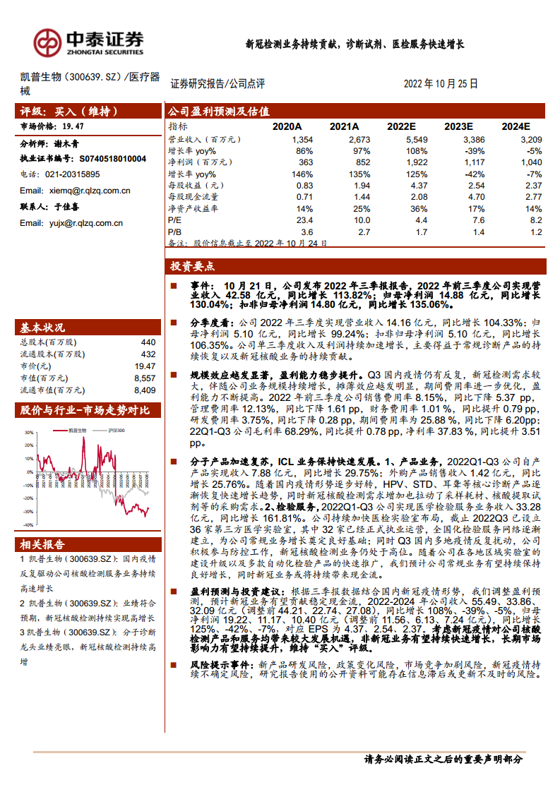 凯普生物(300639):新冠检测业务持续贡献,诊断试剂、医检服务快速增长