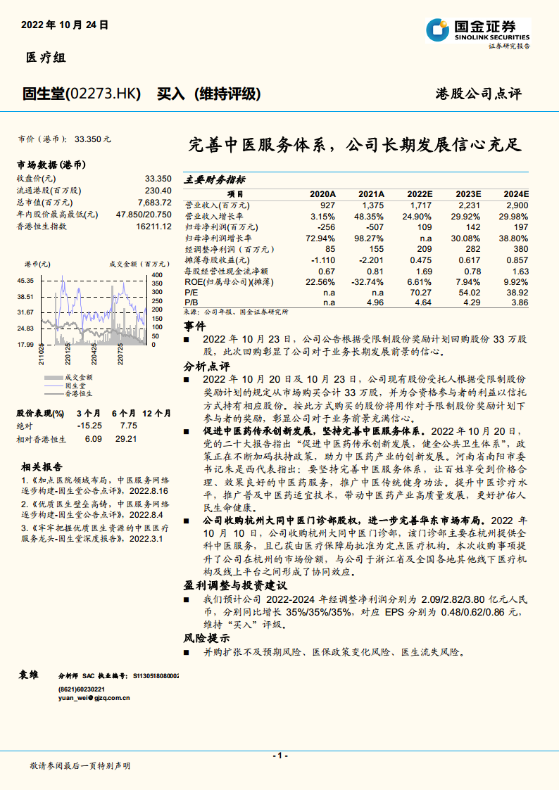 固生堂(02273)港股公司点评:完善中医服务体系,公司长期发展信心充足