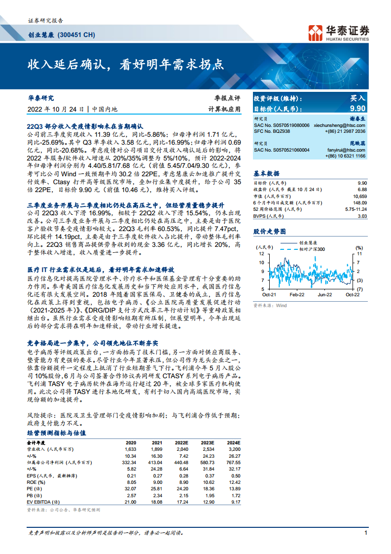 创业慧康(300451):收入延后确认,看好明年需求拐点
