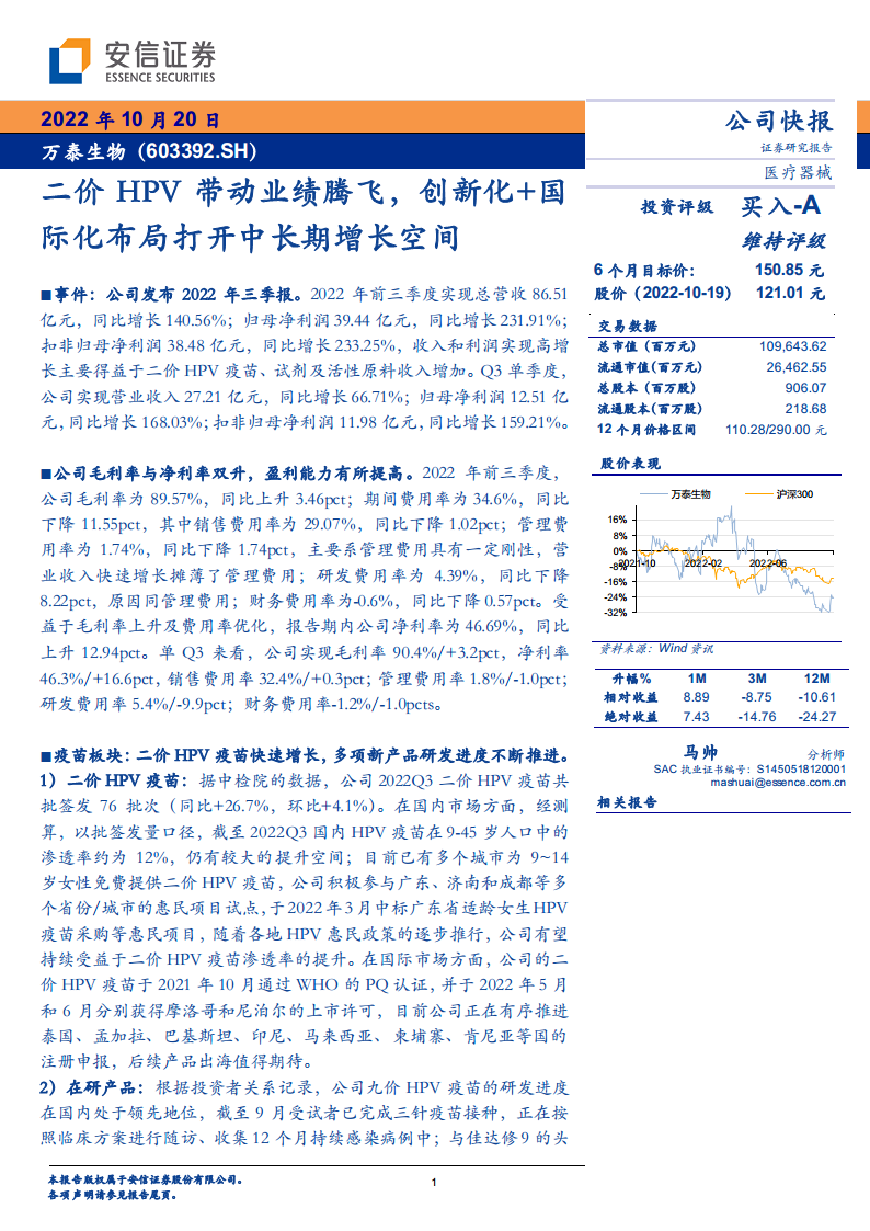 万泰生物(603392):二价HPV带动业绩腾飞,创新化+国际化布局打开中长期增长空间