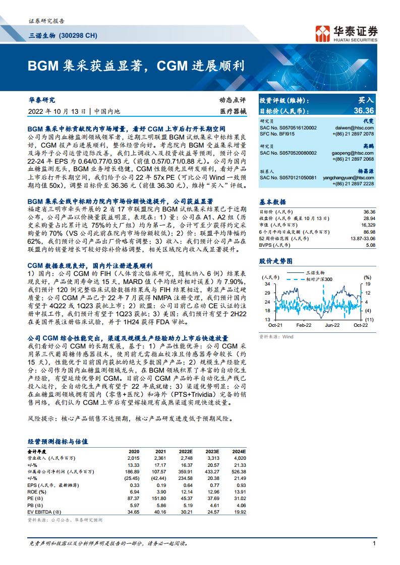 三诺生物(300298):BGM集采获益显著,CGM进展顺利
