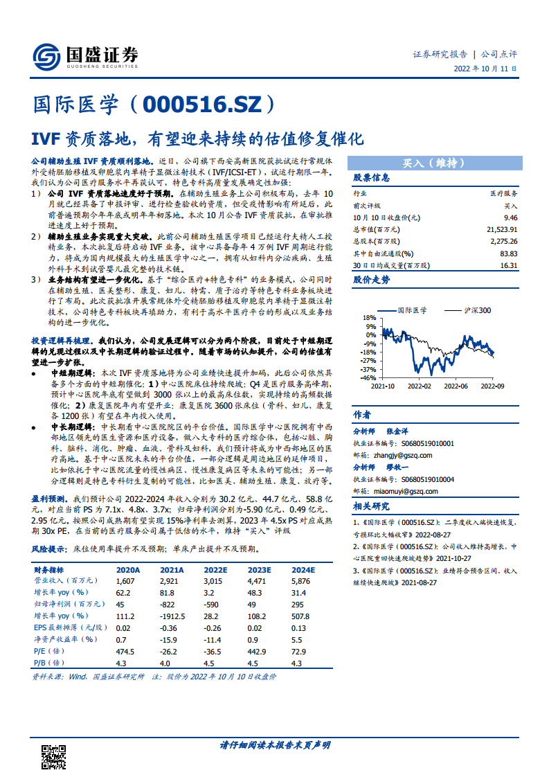国际医学(000516):IVF资质落地,有望迎来持续的估值修复催化